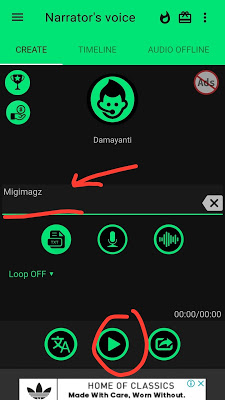 Disini mimin contohkan menggunakan text, kalian tulis kata kata nya seperti pada gambar di bawah ini. Kemudian klik ikon segitiga.